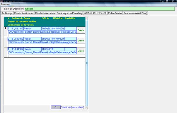 *      L’enregistrement de la version et des versions se fait automatiquement
