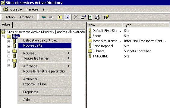 Depuis Site et Services Active Directory > Sites > bouton droit > Nouveau