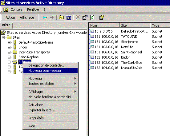 Sélectionner le Sous réseau > bouton droit > Nouveau sous-réseau