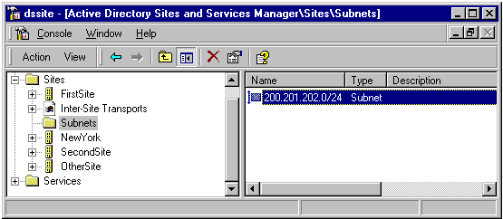 Dans le menu Action, pointez sur Nouveau, puis cliquez sur Sous-réseaux.