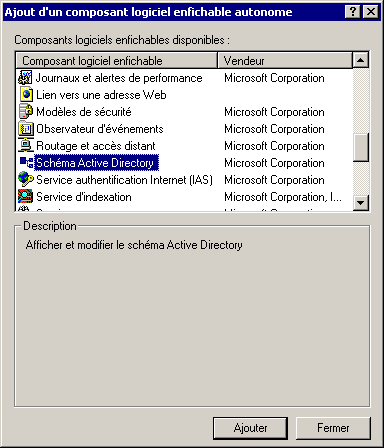 cette commande permet de rendre visible le composant enfichable :Schéma Active Directory