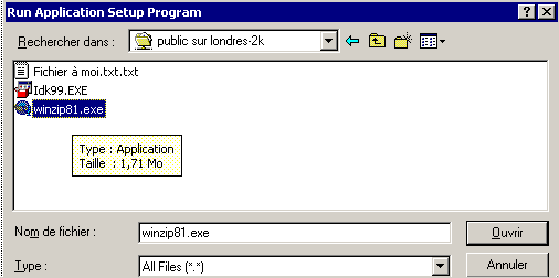 le logiciel Winzip se compose d'un fichier executable se nommant
