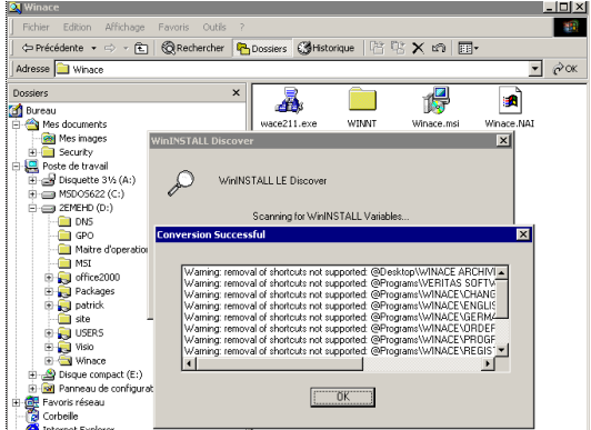 Pour cela il faut installer le logiciel WinInstaller version light de Veritas Software présent sur le CD ROM Server dans le répertoire