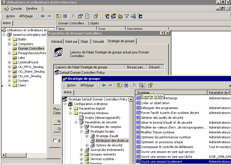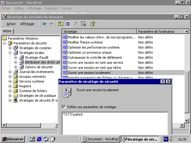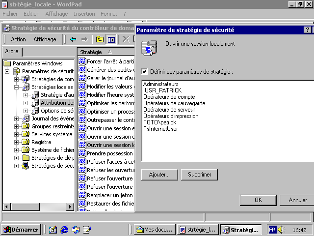 De base, un utilisateur ne possède pas les droits d'ouverture locale.