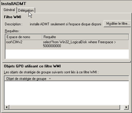 la partie Objet GPO utilisant ce filtre WMI. Par contre une stratégie