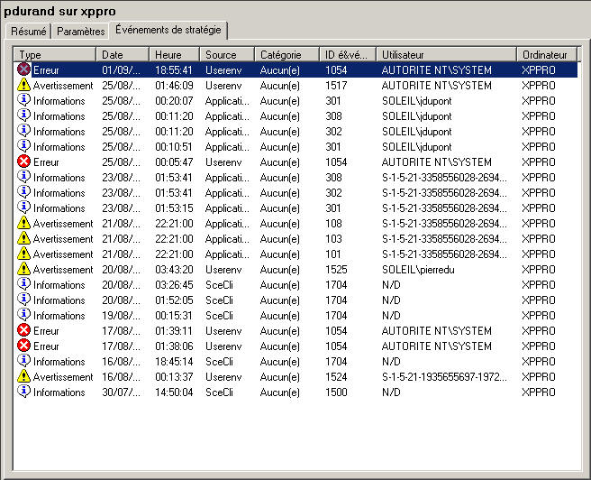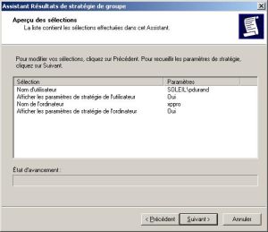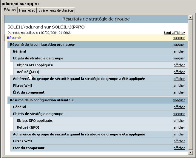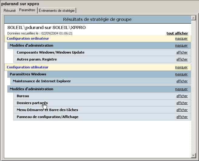 On pourra ainsi voir les paramètres de stratégies de groupe qui
