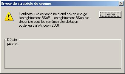 Si on sélectionne une station sous Windows 2000 Pro, voici le message que nous recevons