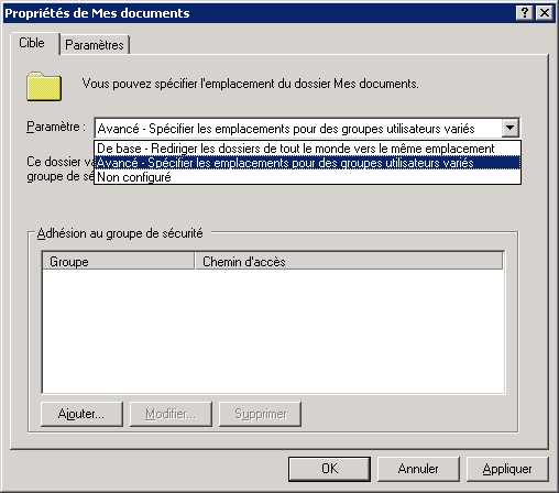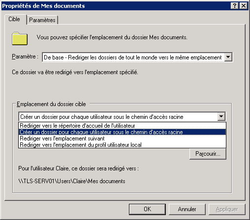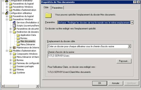 Les utilisateurs ayant la mauvaise habitude de tous sauvegarder leurs documents dans le dossier Mes documents, il est indispensable de rediriger tous ces contenus vers le serveur pour en assurrer la sauvegarde.