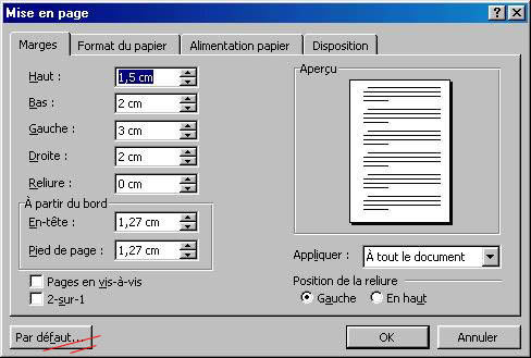 La solution est simple, il faut comme dans les marges sélectionner le bouton