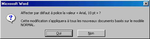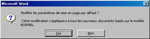Après avoir répondu OUI, une boîte de dialogue vous demande d’enregistrer les modifications dans le modèle NORMAL il est indispensable de répondre OUI pour que le réglage soit conservé.