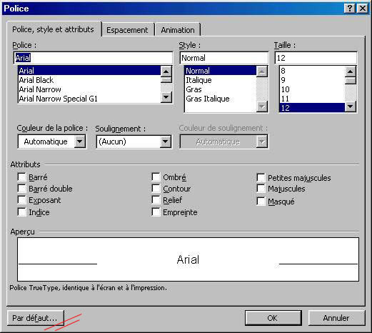 Pour régler le choix de la police il faut depuis le menu choisir Format >
