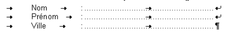 Exemple de présentation des tabulateurs avec point de suite :