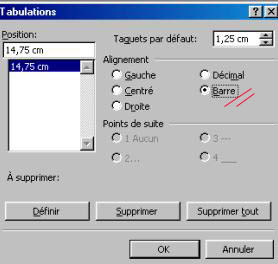 Dans Word 2000, le tabulateur BARRE étant disponible, il se manipule comme tous